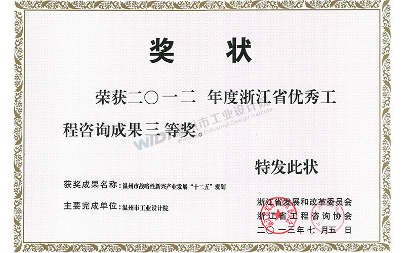 溫州市戰(zhàn)略新興產(chǎn)業(yè)發(fā)展“十二五”規(guī)劃 省優(yōu)秀工程咨詢成果三等獎