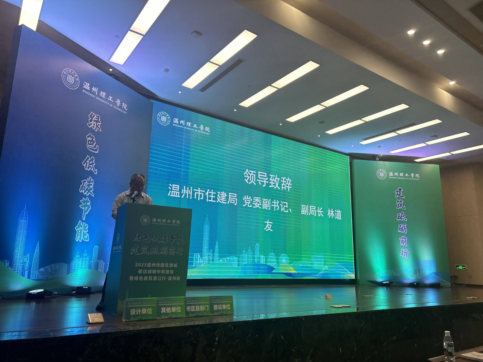 5月26日,由溫州市住建局主辦,浙江省綠色建筑與建筑工業(yè)化行業(yè)協(xié)會(huì)、溫州市綠色建筑與建筑工業(yè)化促進(jìn)會(huì)等單位共同承辦的“2023溫州市建筑領(lǐng)域碳達(dá)峰碳中和培訓(xùn)暨綠色建筑浙江行·溫州站”在溫州理工學(xué)院隆重召開(kāi)。來(lái)自北京、上海、杭州和溫州的相關(guān)領(lǐng)域?qū)<覍W(xué)者,以及政府部門、建設(shè)單位、設(shè)計(jì)單位、施工圖審查咨詢中心和行業(yè)企業(yè)代表等200余人參加本次論壇。